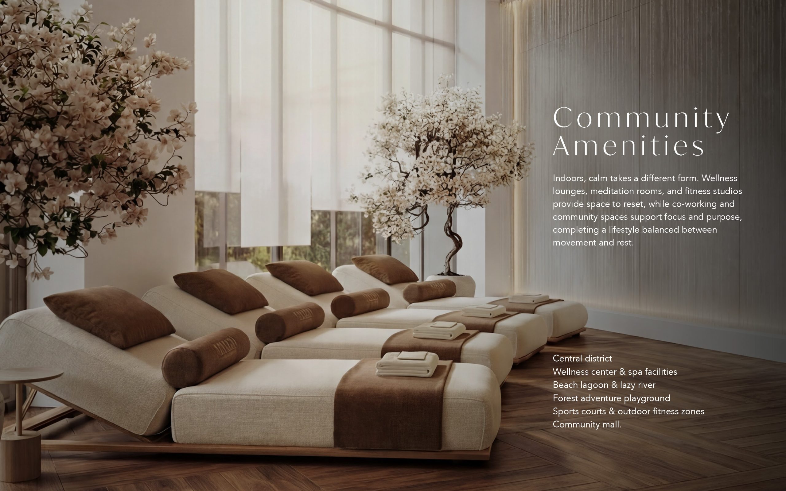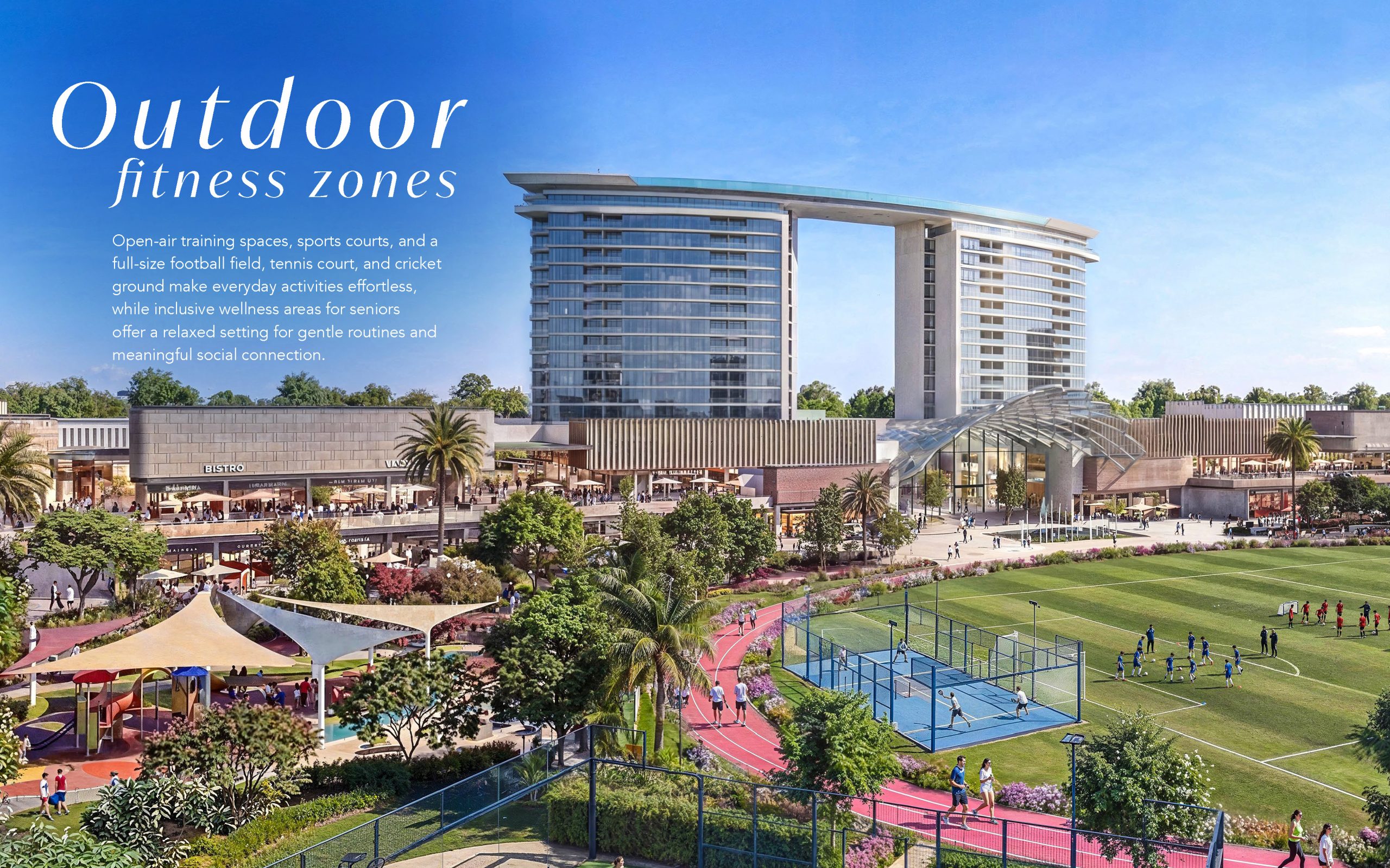 Forest-inspired villa neighbourhoods and contemporary residences are arranged around a vast central park and a continuous green spine, alongside a community mall, wellness centre, schools, healthcare facilities, and curated lifestyle amenities, creating a setting where wellbeing and modern living come together naturally.